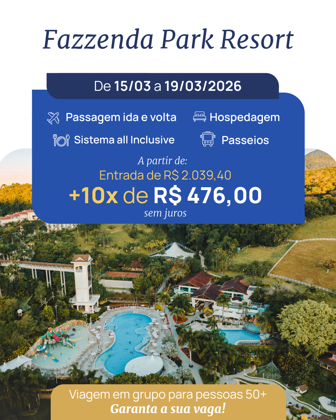 Nossa proposta é All Inclusive e contará com 5 refeições por dia, apartamentos prime (recém inaugurado no resort) e uma grande área de lazer proporcionada pelo Resort Fazzenda Park.