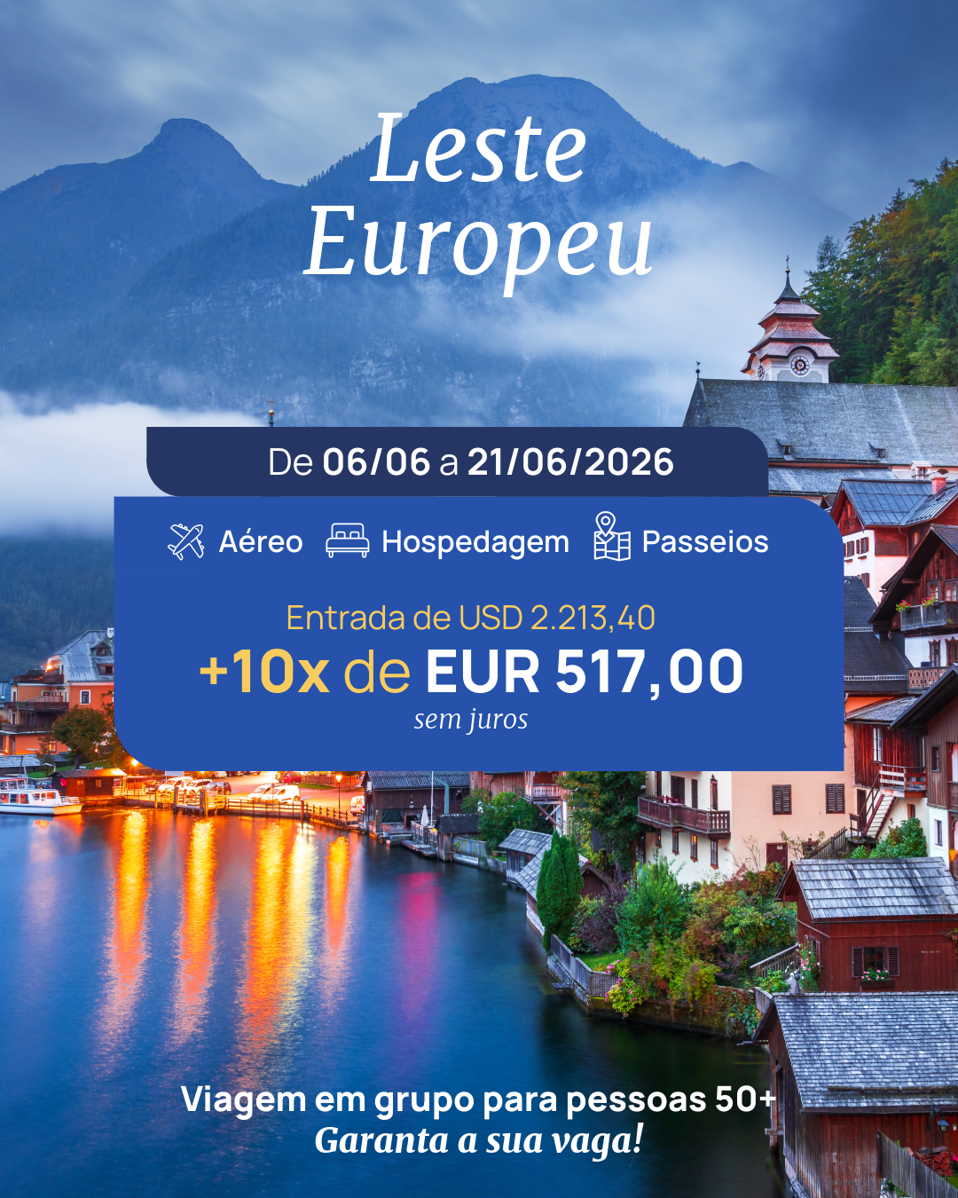 O Leste Europeu é uma região fascinante, onde castelos medievais, vilas charmosas e uma história encantadora se unem para revelar a alma autêntica da Europa, iremos visitar Áustria, Polônia, Hungria, República Tcheka e Eslováquia. Uma viagem pelo coração da Europa, unindo cultura, história e paisagens encantadoras. O roteiro inclui Viena, elegante e musical; Budapeste, vibrante às margens do Danúbio; Bratislava, charmosa e medieval; Cracóvia, cheia de memória e tradição; Brno, moderna e acolhedora; e Praga, com sua beleza arquitetônica e atmosfera romântica. Um percurso inesquecível por cinco países que revelam o melhor da Europa Central.